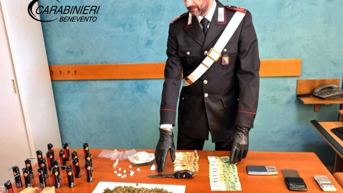 Questa mattina i carabinieri della compagnia di San Bartolomeo in Galdo con l'ausilio delle unità cinofile hanno arrestato in flagranza del reato di detenzione ai fini di spaccio di sostanze stupefacenti un 52enne del Fortore, già noto alle forze dell’ordine, che nascondeva oltre 60 grammi di cocaina nella sua abitazione. Droga, spiegano i carabinieri in parte già confezionata e pronta per essere ceduta. All'atto del controllo l'indagato ha ha provato a disfarsi di alcune dosi gettandole in un wc. Durante la perquisizione sono stati sequestrati anche 3 bilancini di precisione, vari materiali per il confezionamento e poco più di 1.300 euro, ritenuti dai militari provento dell’attività di spaccio. Nel corso delle operazioni sono stati pure sequestrati più di 20 artifizi pirotecnici artigianali di vietata detenzione, sempre nascosti in casa dell’arrestato che, per questo motivo, è stato anche denunciatoper omessa denuncia di materie esplodenti.