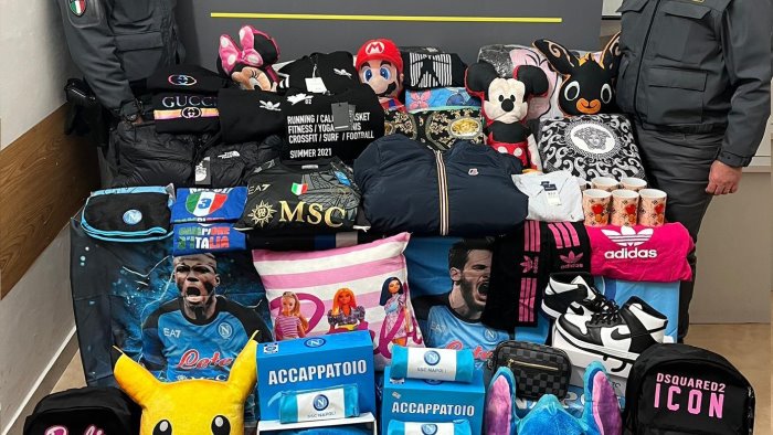 In particolare, militari del Gruppo di Benevento hanno sottoposto a controllo un esercizio commerciale a Montesarchio dove hanno notato capi di abbigliamento e articoli per la casa, zaini, borselli, maglie di squadre di calcio, peluche, accappatoi e cuscini, contraffatti e riconducibili a note aziende di produzione.