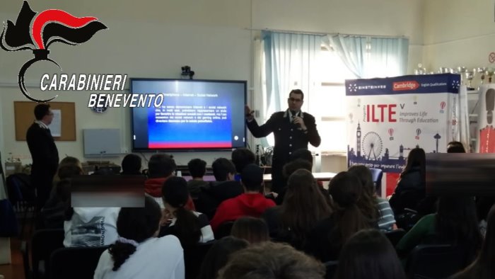 Sono stati oltre 600 gli alunni della Scuola Secondaria di Primo Grado “F. Torre” e dell’Istituto Professionale dei Servizi Alberghieri e della Ristorazione “Le Streghe” di Benevento che hanno accolto i Carabinieri della Compagnia Capoluogo. Le lezioni hanno coinvolto gli studenti dell’intero ciclo di studi delle classi secondarie di primo grado, guidati dal dirigente scolastico Prof. Edoardo Citarelli e le classi terze dell’IPSAR, accompagnate dalla dirigente Antonella Gramazio e dal corpo docenti. Agli incontri ha presenziato il capitano Emanuele Grio, Comandante della Compagnia di Benevento.