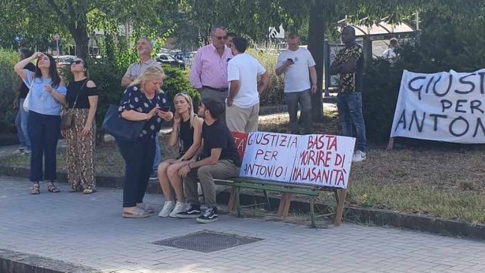 Sono tornati dinanzi al Tribunale issando cartelli e striscioni per “chiedere giustizia”. Genitori, fratelli ed amici di Antonio Pagnano, 26 anni, di Colle Sannita, morto il 5 febbraio 2020 dopo più interventi chirurgici, si sono nuovamente ritrovati questa mattina, a distanza di circa due mesi, in via De Caro, in concomitanza con la camera di consiglio fissata dinanzi al gip Roberto Nuzzo dopo l'opposizione alla proposta di archiviazione – la seconda - avanzata dalla Procura rispetto all'inchiesta sul decesso del giovane a carico di due medici.
