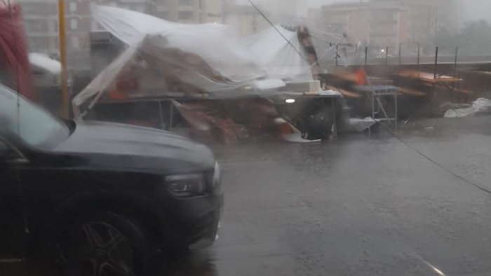 A Benevento in particolare le forti raffiche di vento e la pioggia hanno spazzato via numerose luminarie, bancarelle e stand installati lungo via Posillipo e in altre strade in occasione della Madonna delle Grazie.
