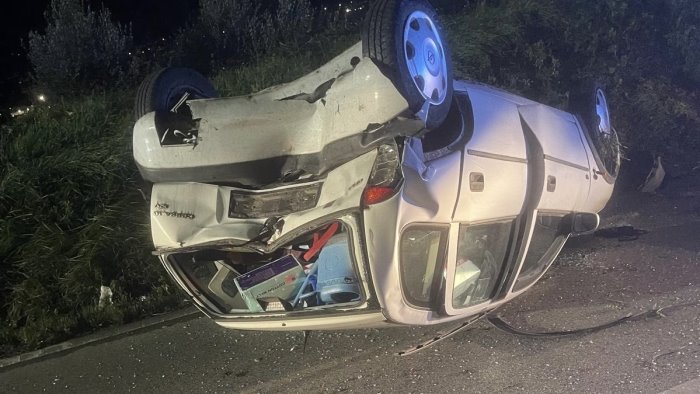 E' di una persona ferita e due auto distrutte il bilancio dell'incidente stradale registrato questa sera lungo la tangenziale tra le uscite Stadio e Rione Libertà. A scontrarsi una Opel Corsa e un altro veicolo. In seguito all'urto, la Corsa si è ribaltata sulla carreggiata. Scattato l'allarme, sul posto sono accorsi i vigili del fuoco del comando provinciale, i sanitari del 118 e i carabinieri. Estratto dall'abitacolo, il malcapitato è stato trasportato in ospedale. Saranno ora i rilievi dei carabinieri a dover restituire la dinamica dell'incidente.