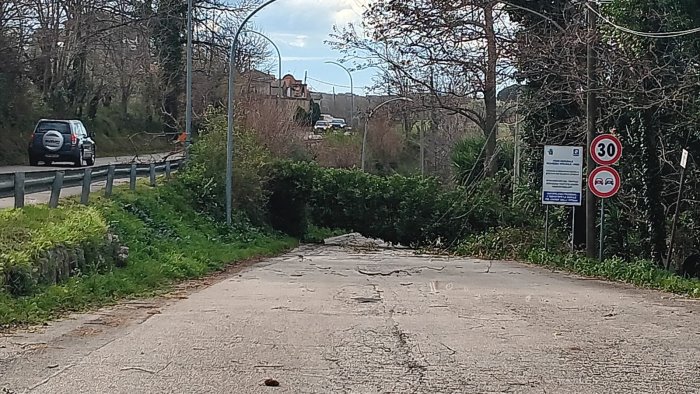 Per fortuna in quel momento non stavano transitando auto o pedoni. Il grosso fusto si è appoggiato sulla strada occupandola totalmente. E' accaduto lungo la provinciale all'ingresso di San Lorenzello dove un albero ad alto fusto a causa del forte vento è stato sradicato e fatto precipitare sull'asfalto.
