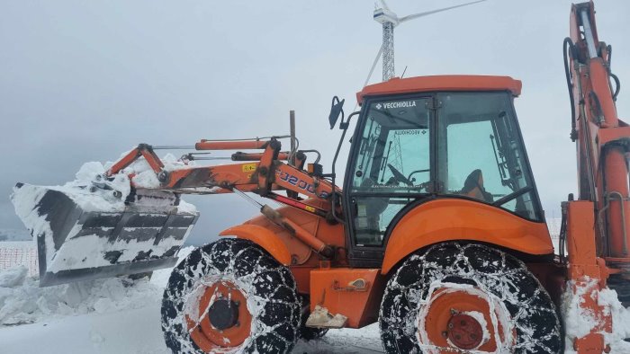 Nelle immagini che ha mandato in redazione Antonello Vecchiolla, una terna attrezzata che dal'lalba di stamane sta ripulendo alcune strade dalla neve e maggiormente dal ghiaccio che si è formato a causa delle passe temperature e del vento da nord che soffia ormai da due giorni. Nel video in particolare la pulizia di una strada di collegamento da Montefalcone di Val Fortore alla viabilità principale per Benevento.