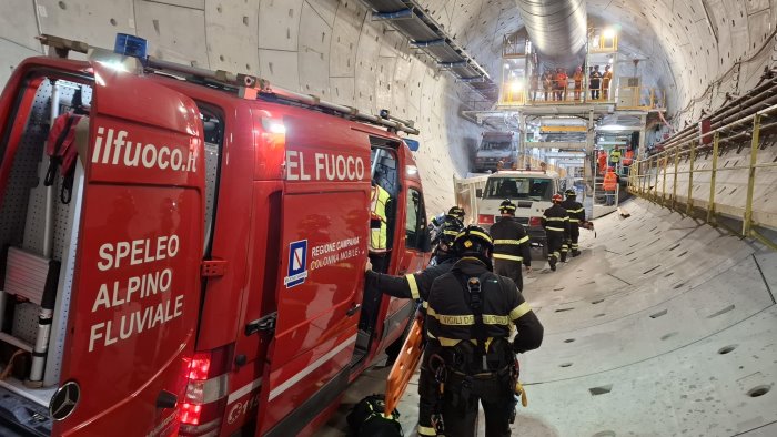 Gli specialisti dei vigili del fuoco di Benevento del Nucleo Saf, speleo alpino fluviale e di altri mezzi, in collaborazione con le imprese e Ferrovie hanno effettuato nella giornata di ieri un'esercitazione all'interno della galleria in fase di realizzazione tra Sannio e Irpinia per l'alta velocità – capacità ferroviaria Napoli – Bari.