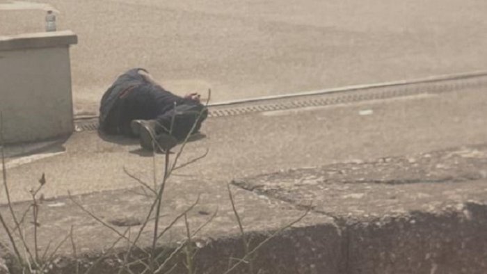 Si è disteso, riverso su un lato, all'ingresso del parcheggio di un'attività commerciale di via Napoli. E' lì già da un bel pezzo, sotto gli occhi di quanti transitano da quelle parti o entrano a piedi o in auto nell'area di sosta del supermercato. Probabilmente l'uomo dorme, qualcuno ha allertato l'intervento di un'ambulanza.