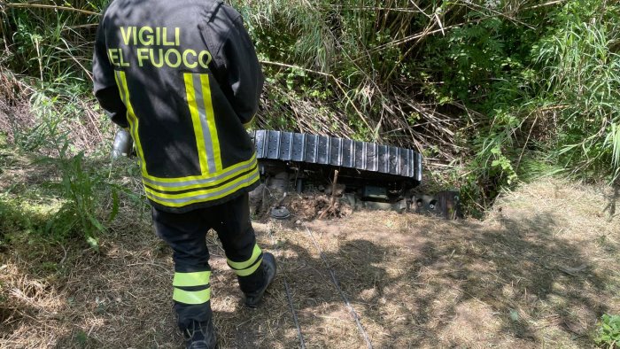 L'allarme è scattato poco prima delle 14 quando una persona ha notato il trattore a cingoli ribaltato in un terreno impervio alla località Loreto.