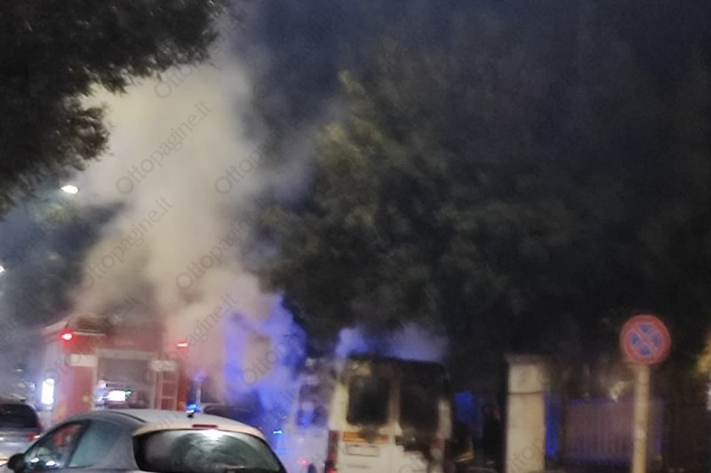 Le fiamme hanno interessato un Fiat Ducato adiacente la villa comunale. Numerose le telefonate al 115 e alle forze dell'ordine.