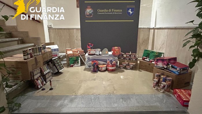 La Guardia di Finanza di Benevento ha sequestrato 23 chilogrammi di di materiale pirotecnico illegale trovato in un esercizio commerciale di Benevento.
