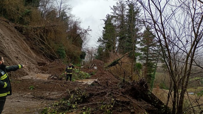 La pioggia abbondante di queste ore ha creato una frana lungo la strada provinciale 12. Lo smottamento di alberi e terreno si è verificato,. in particolare, a Sant'Angelo a Cupolo, tra il bivio di Pagliara e Bagnara.