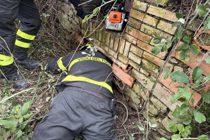 È accaduto questa mattina alla località Barba del comune di Ceppaloni. È qui, nelle campagne tra Sannio e Irpinia che i vigili del fuoco del comando provinciale di Benevento sono stati chiamati ad intervenire per recuperare un cagnolino che, forse per gioco o per paura si era addentrato all'interno di un rudere abbandonato, coperto da arbusti e spine.