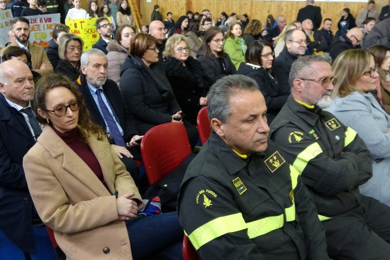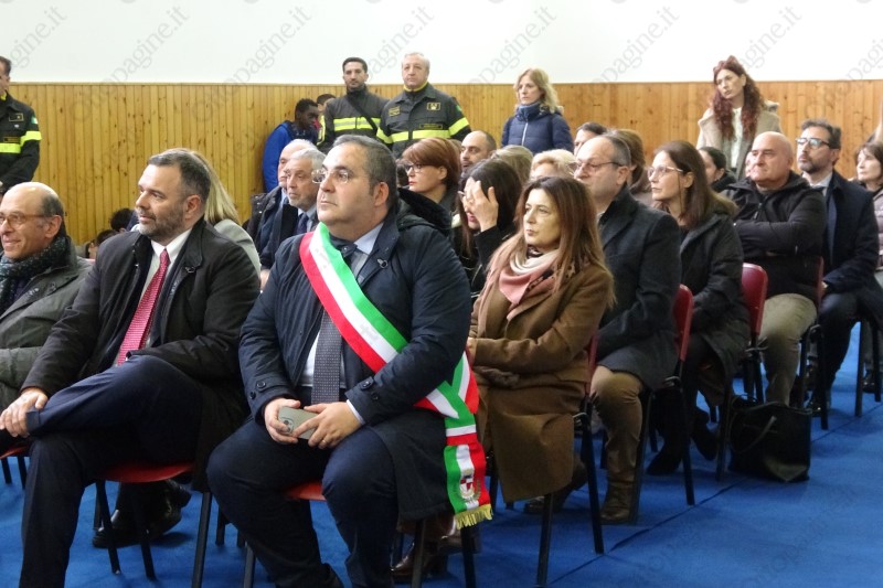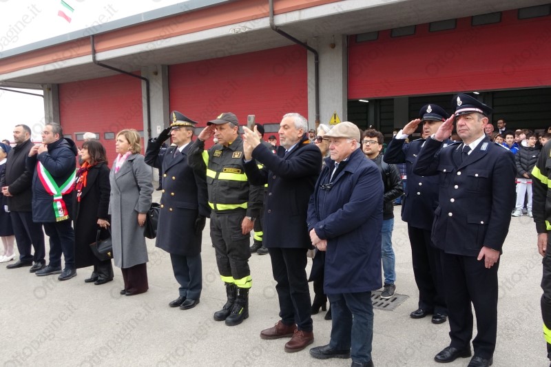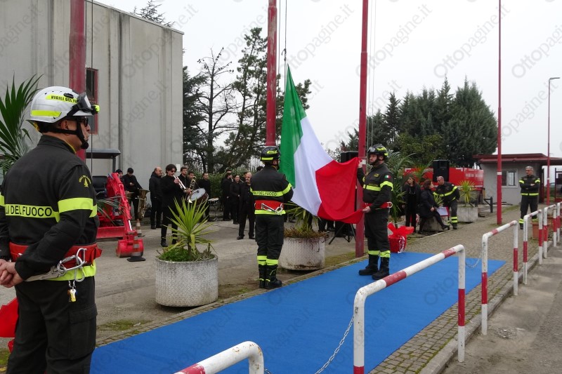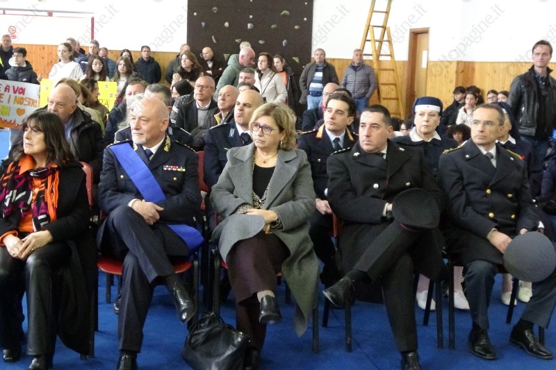 Subito dopo l'alzabandiera, sull'inno di Mameli eseguito dagli studenti del Conservatorio, gli ospiti e il personale presente hanno raggiunto la palestra del comando provinciale per la lettura dei messaggi istituzionali e il saluto del comandante.