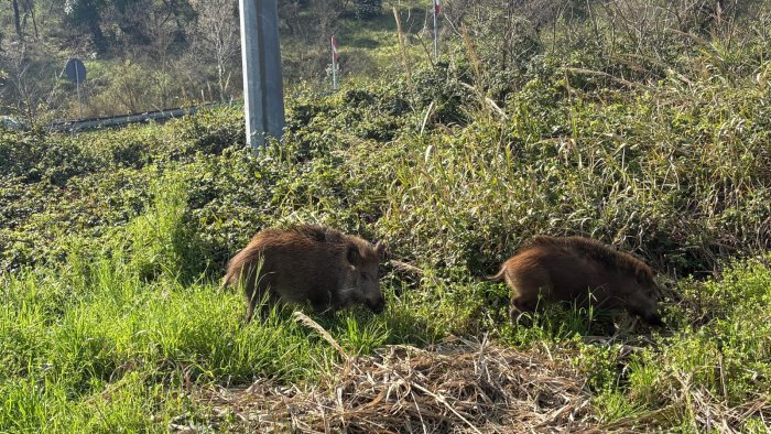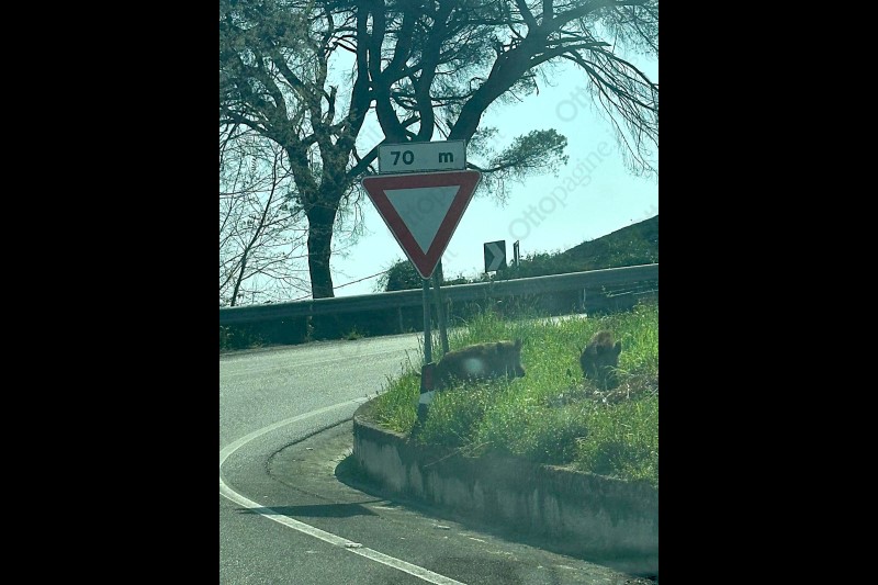 Per fortuna evitato l'impatto grazie alla conformazione della strada di immissione alla superstrada che è in salita e in curva ed impone quindi una bassa velocità agli automobilisti. I due cinghiali sono rimasti poi a brucare l'erba fino a salire sulla Tangenziale per poi, per fortuna, tornare indietro per dirigersi nuovamente nelle campagne di Santa Clementina, probabilmente lungo il fiume dove solitamente si possono notare.