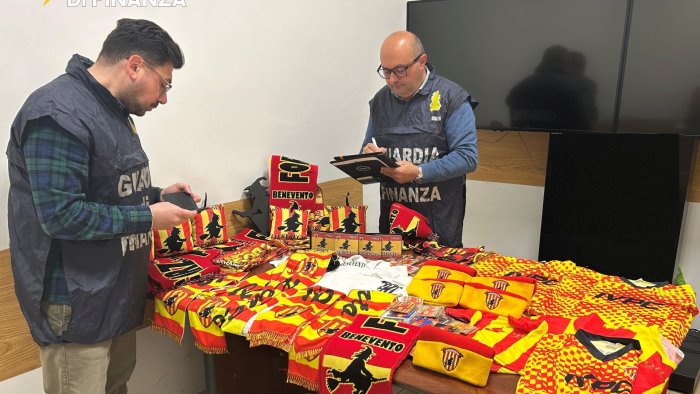Militari del Comando provinciale della Guardia di Finanza di Benevento hanno sequestrato sciarpe, t-shirt, bandiere e altri gadget sportivi riconducibili al marchio della società “Benevento Calcio S.r.l.” contraffatti.