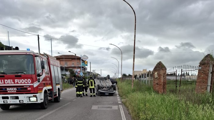 I vigili dle fuoco hanno messo in sicurezza la Citroen alimentata a Gpl e capovolta.