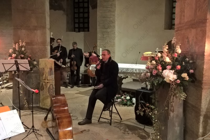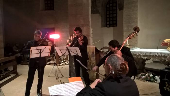 Il riverbero delle volte e degli archi dell’edificio sacro ha trovato la sua seconda naturale vocazione nell’accogliere e valorizzare un incontro musicale di raffinata maestria, scaturito dal trascinante virtuosismo de I Solisti dell’Accademia: primo violino Marco Serino (Accademia Nazionale S. Cecilia di Roma, Orchestre di Zurigo e Bucarest, violino solista con Ennio Morricone, ecc.), secondo violino Giuseppe Carotenuto (Teatro San Carlo di Napoli, Radio Vaticana, ecc.), violoncello Gianluca Giganti (Accademia Nazionale S. Cecilia di Roma, Orchestra Sinfonica Nazionale della Rai di Torino, ecc.), contrabbasso Gianluigi Pennino (Orchestra Festival Pucciniano, Orchestra da Camera Solisti del San Carlo, Orchestra Rossini di Pesaro, Arena di Verona, ecc.).