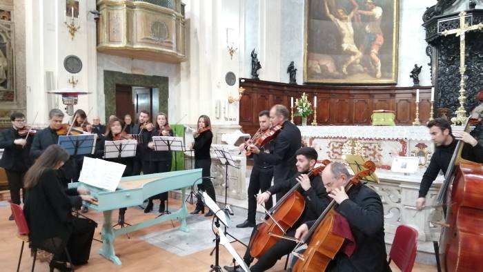 Ieri sera, in una Basilica di San Bartolomeo gremita di pubblico, ha esordito la nuova Stagione Concertistica 2020-2022 di una delle migliori formazioni musicali del Sud Italia, che unisce altissime professionalità consolidate a brillanti talenti emergenti, in un ensemble di straordinaria qualità artistica che, nel mirabile programma della serata, ha saputo alternare esecuzioni di raffinata sensibilità a momenti impetuosi ed energici, movimenti corali rassicuranti a passaggi solistici intriganti e sorprendenti, affidati alla magistrale interpretazione dei Violini Solisti Marco Serino, Alina Taslavan, Emanuele Procaccini, Francesco Norelli, Alessia Avagliano, Valentina Del Re e Alessandra Rigliari, e dei Violoncelli solisti Gianluca Giganti e Alfredo Pirone. Ricco e variegato il calendario degli appuntamenti futuri come ha ricordato Marcella Parziale (Santa Sofia in Santa Sofia) facendo le veci del direttore artistico, assente per influenza, Filippo Zigante.