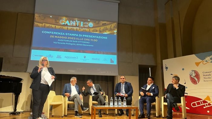 Valorizzare il patrimonio delle produzioni liriche e dei teatri di prosa italiani attraverso metodi e strumenti Ict: è questa l’ambiziosa sfida del Progetto “Cantico”, presentato questa mattina a Benevento, all’Auditorium San Vittorino, alla presenza di Caterina Meglio, Presidente del Conservatorio di Musica “Nicola Sala” di Benevento, Francesco De Pierro, Vice sindaco di Benevento, Luigi Nicolais, Consigliere per le Politiche della Ricerca del Ministro dell’Università e della Ricerca Annamaria Bernini, Gerardo Canfora, Rettore dell’Università degli Studi del Sannio, Giosuè Grassia, Direttore del Conservatorio di Musica “Nicola Sala” di Benevento, Giuseppe Di Giovambattista, R&D Manager Innovaway e Antonio Giacomini, CEO Innovaway.