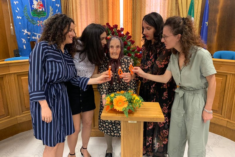 Nella sala al piano terra allestita per l'occasione il taglio della torta per spegnere le candeline al fianco dei nipoti, anche di quelli che si sono collegati in video chiamata poiché ancora al Nord. Una mattinata insomma ricca di emozioni non solo per 'zì Graziuccia' - come tutti amano chiamarla - ma anche per l'intera comunità.