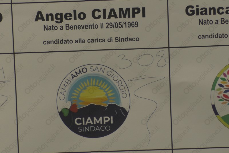 Si è insediato questa mattina, dopo il riconteggio dei voti il neo sindaco di San Giorgio del Sannio, Angelo Ciampi. 162 i voti in più, rispetto allo sfidante Vincenzo Boniello, che gli hanno consentito di indossare la fascia tricolore di uno dei comuni più grandi del Sannio. Angelo Ciampi, ingegnere, ex sindaco di San Martino Sannita (lista CambiAMO San Giorgio) è arrivato presso il seggio di via Bocchini a San Giorgio intorno alle 11. Ad attenderlo i suoi consiglieri eletti e non - in prima fila il generale dei Carabinieri in congedo, Sigismondo (Dino) Fragassi, Giovanna Annese, Maurizio Bocchino, Francesca Maio, Gianluca Melillo, Diego Mercurio, Giovanna Petrillo, Fabio Sacchetta, Marco Salierno, Maria Santucci, Angelina Serino e Donatella Zuzolo e quanti lo hanno supportato per questa tornata elettorale nn certo semplice.
