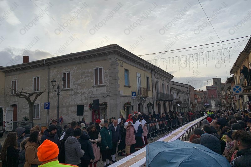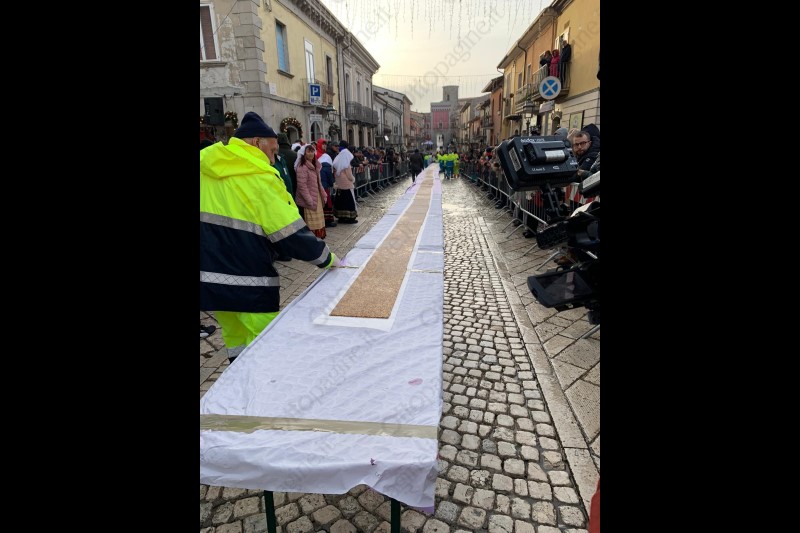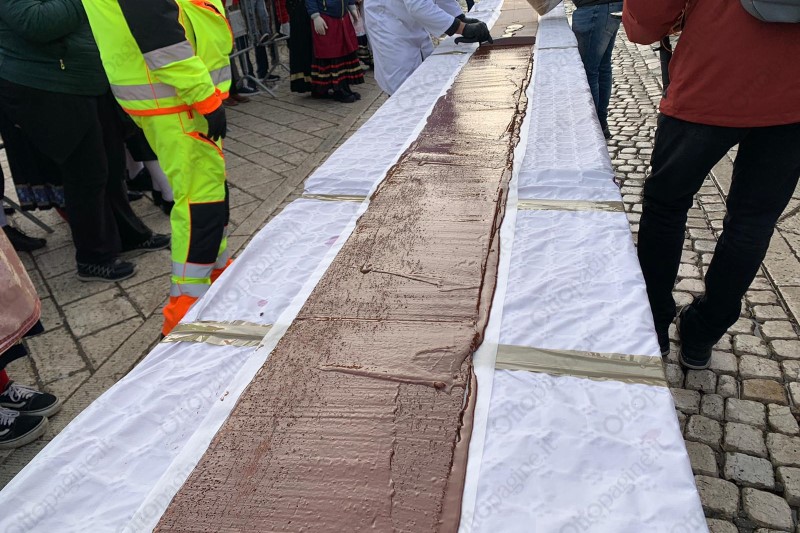 Nel centro storico, infatti, è stato possibile assistere alla realizzazione del dolce che per l'edizione 2022 ha raggiunto i 65 metri di lunghezza. Preparato con la partecipazione delle aziende locali è stato poi offerto e degustato dai presenti.