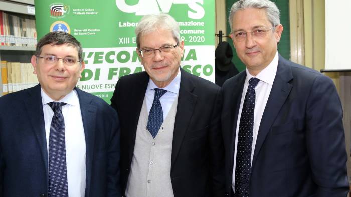Sulla questione banche interviene Claudio de Vincenti, ex ministro alla Coesione territoriale e per il Mezzogiorno, già sottosegretario alla Presidenza del Consiglio nel governo Renzi, nonché docente all’Università la Sapienza e alla Luiss Guido Carli. “De Vincenti non trova disdicevole la presenza di più banche sul territorio; ciò che conta è che esse si occupino di formare manager, capaci di interfacciarsi sul territorio e saperne leggere le potenzialità e le richieste per creare un tessuto creditizio con cui far fronte alla crescita del Mezzogiorno. Un modo per recuperare c’è, rincuora, e va rinvenuto nel recupero di una cultura ecologica integrale, con iniziative a favore dell’ambiente e delle persone, da osservare con 'sguardo diverso', inclusivo e responsabile. Scienza e tecnologie non debbono essere demonizzate; esse, al contrario, possono contribuire al cambiamento, alla qualità della vita, a compiere il salto verso la bellezza”.