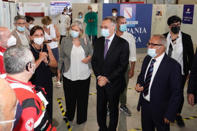 Il presidente Asi Luigi Barone spiega: «E' un fiore all'occhiello perché rappresenta un esempio di collaborazione. Qui due mesi fa non c'era nulla, in quattro giorni è diventato un gioiellino che resterà a disposizione qualora ce ne fosse bisogno in autunno. Arriveremo a fare 12mila vaccini qui, dando una mano a tutti i settori economici e decongestionando i centri vaccinali dell'Asl: se provincia di Benevento oggi ha percentuali vaccinali altissime lo deve anche a questo hub. Questo hub è in zona Zes: ma serve impegno maggiore, servono infrastrutture, materiali e immateriali, servono tecnologie.»