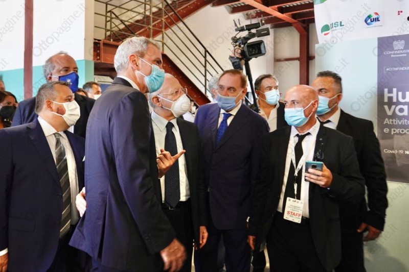 L'industria è lo scopo finale dell'uomo di Confindustria, noi dobbiamo mettere al centro l'uomo: l'industria è il risultato dell'uomo, non il contrario. Quando abbiamo aperto questo hub ho detto che avremmo dovuto dare vaccini a industrie, per tutelare il tessuto produttivo, ma anche alla gente comune. Quanto accaduto dovrà servire per ripartire, tutto insieme, con una nuova rivoluzione che mette al centro l'uomo. Bonomi e De Luca hanno al centro delle proprie idee l'uomo».
