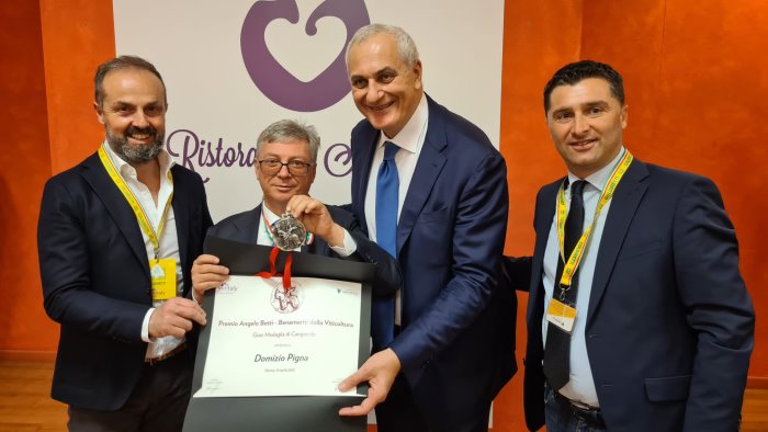 Al Vinitaly il premio "benemeriti della viticoltura italiana" va per la Campania al sannita Domizio Pigna, presidente della cooperativa La Guardiense di Guardia Sanframondi e del distretto di qualità dei vini beneventani. Il premio nato nel 1973 e dedicato ad Angelo Betti, fondatore del Vinitaly, ha visto la consegna della Medaglia Cangrande oggi pomeriggio al Palaexpo della Fiera di Verona. Il premio viene riconosciuto a coloro che abbiano contribuito e sostenuto il progresso qualitativo dell'enologia italiana.