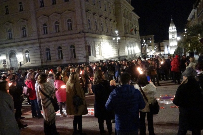 La città si illumina di rosso contro la violenza di genere. La manifestazione della Cgil