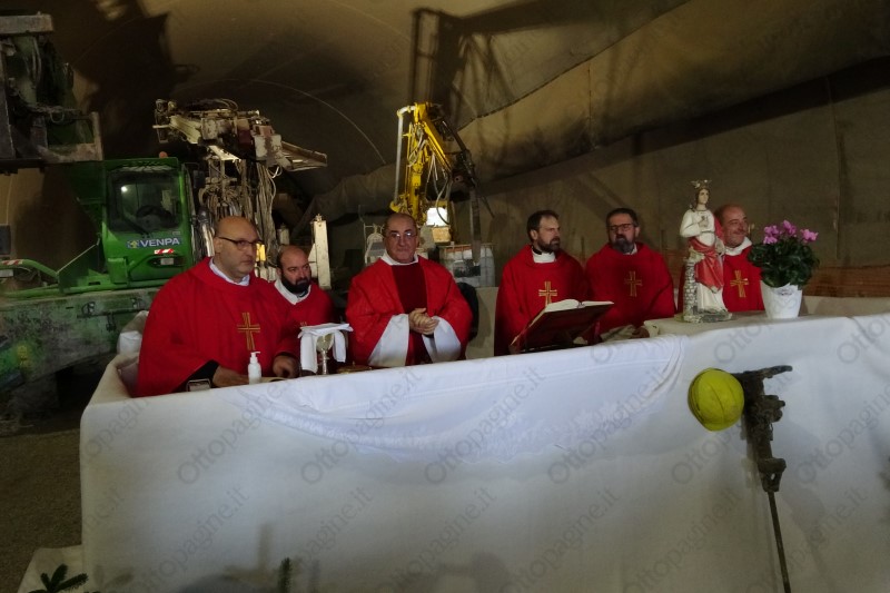 Messa nella galleria in via di realizzazione per oltrepassare il centro abitato di San Marco