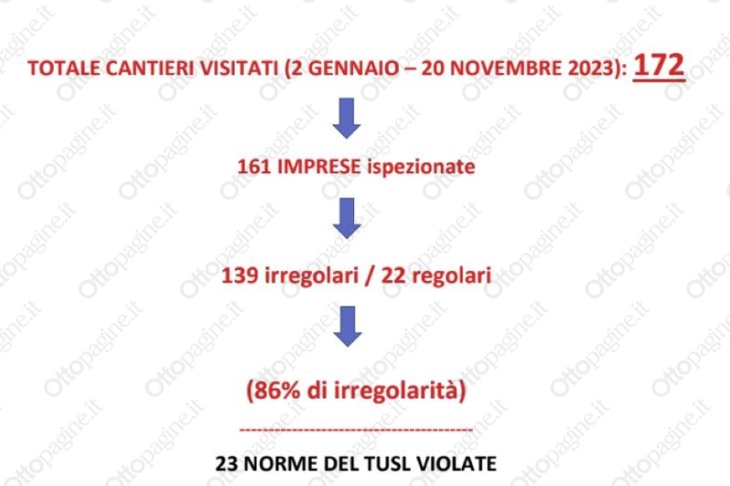 Infortuni sul lavoro: nel 2023 controllati 172 cantieri edili, nel 2024 già 75