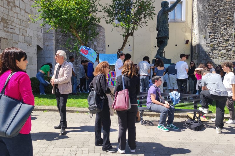 Questa mattina studenti, genitori e alcuni docenti dinanzi alla Rocca dei Rettori