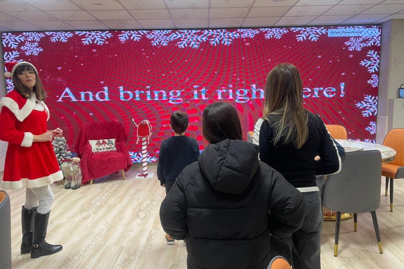 Ieri sera l'iniziativa della storica azienda con Babbo Natale e il karaoke dei più piccoli