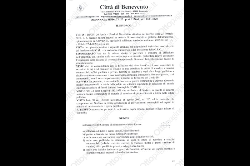 Ordinanza sindacale: stop a sigarette in aree pubbliche del centro e nei pressi di attività