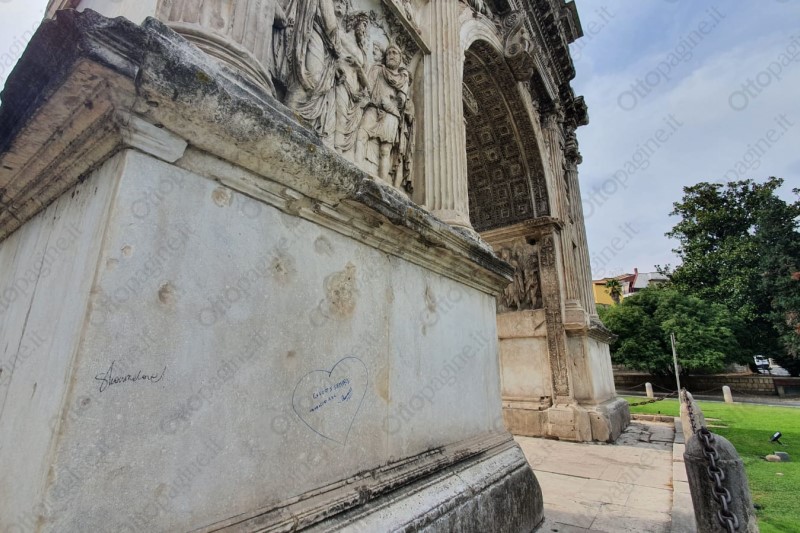 Sfregi e scritte sull'Arco di Traiano, vandali in azione
