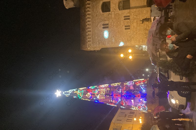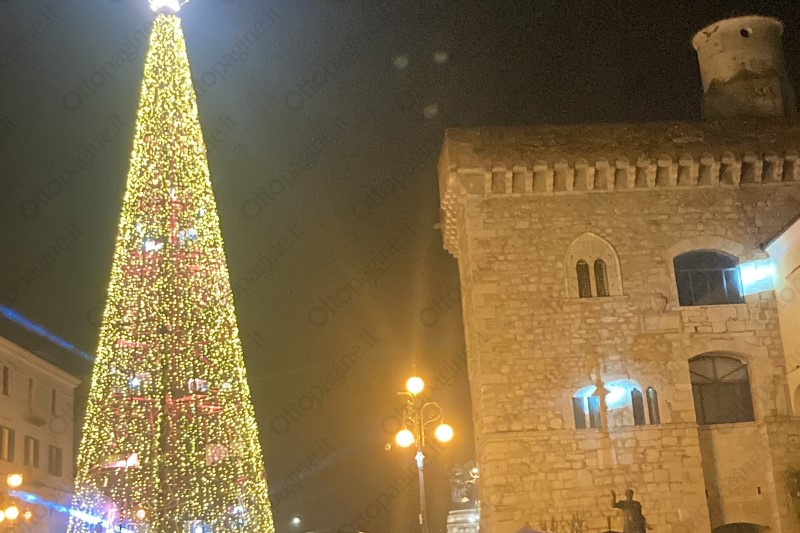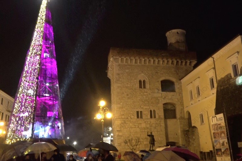 Benevento. Acceso il maxi albero di Natale, la pioggia non spegne l'entusiasmo