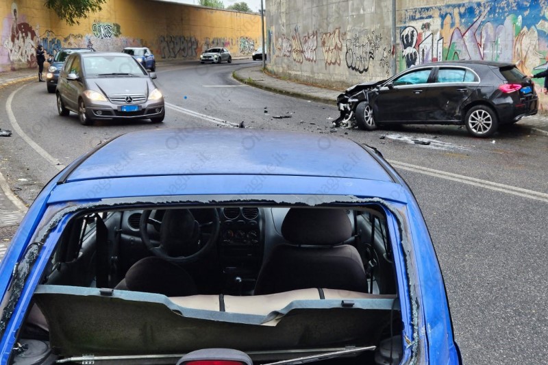 Incidente tra una Mercedes e una Chevrolet Matiz in via Vittime di Nassiriya