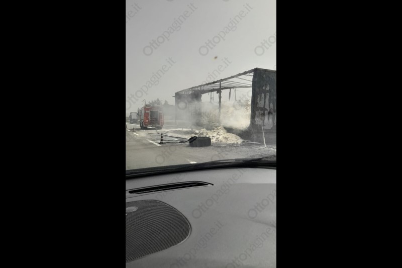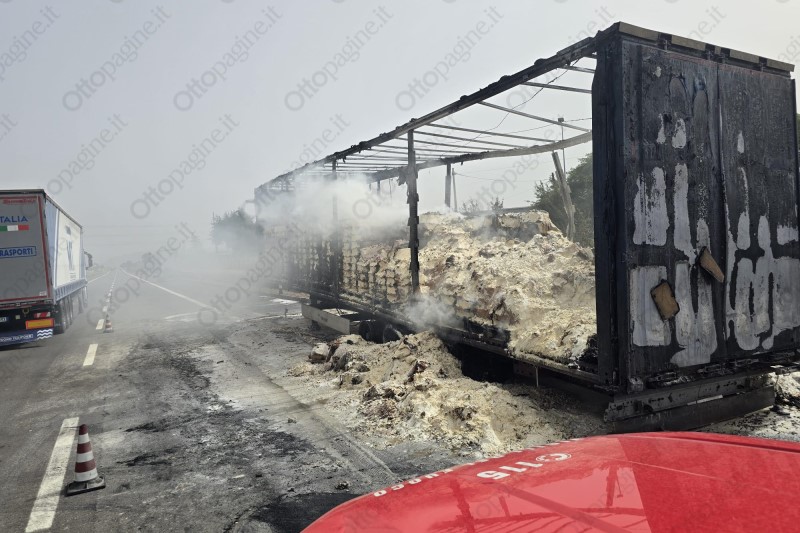 Autoarticolato carico di farina in fiamme sulla Statale 372 Telesina