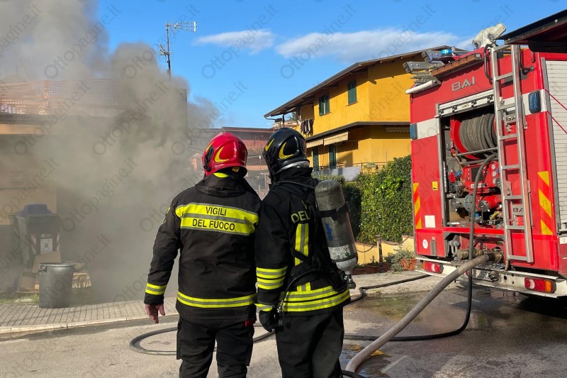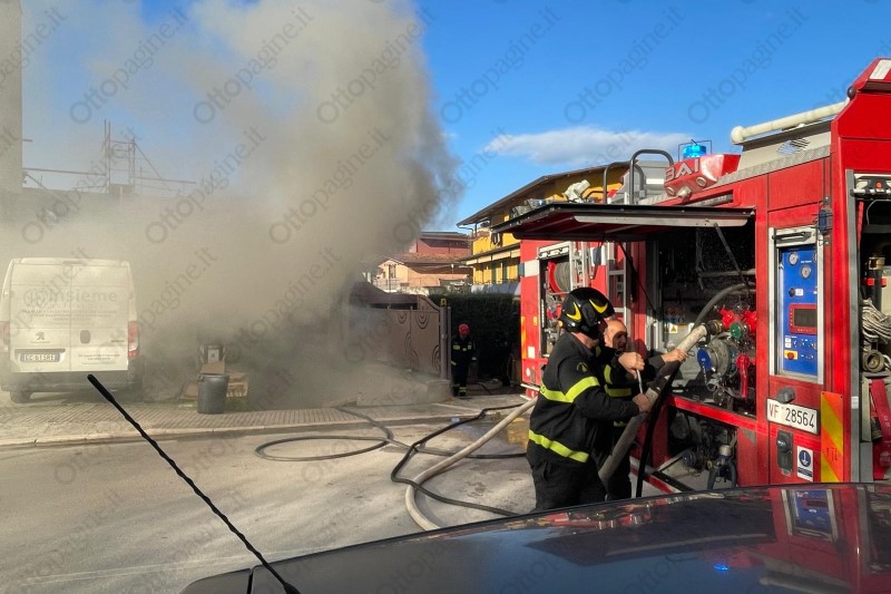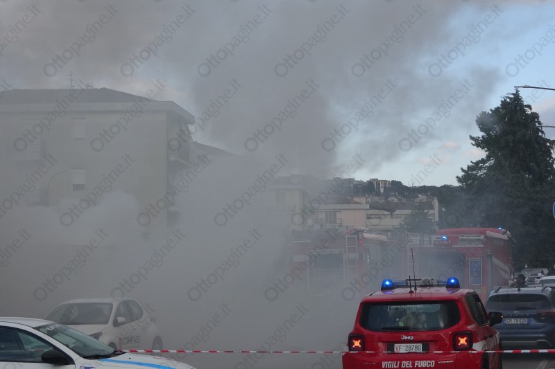 Fiamme e densa colonna di fumo tra via Napoli e via Lungosabato Bacchelli