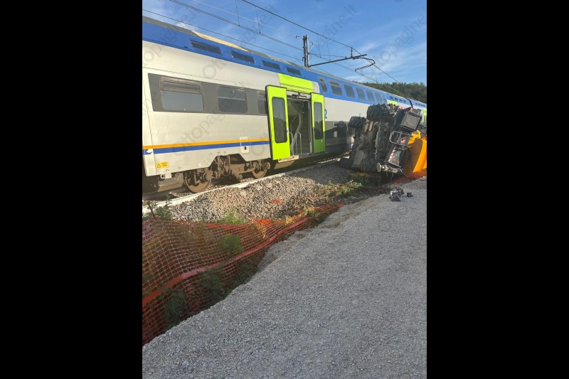 Gru si ribalta sui binari, treno deraglia, paura per i 30 passeggeri