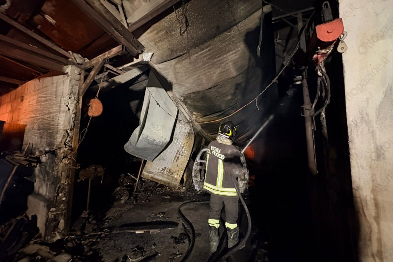Nella notte il rogo che ha provocato danni ingenti alla struttura e ai veicoli