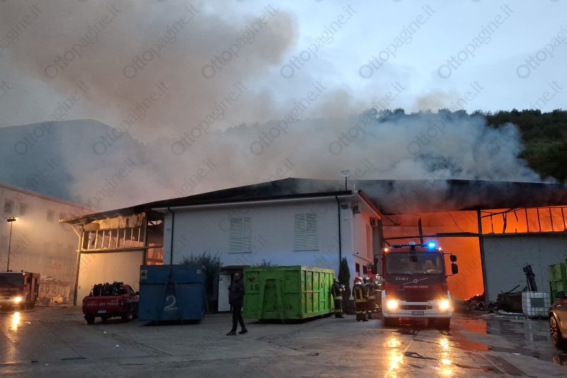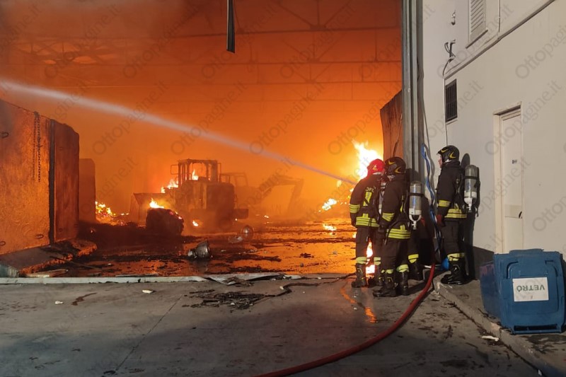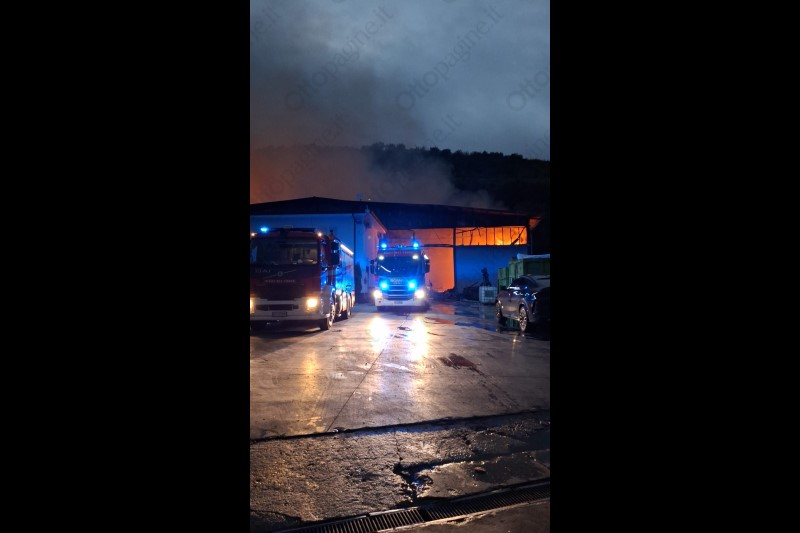 Incendio capannone Ravitex, più squadre dei vigili in azione
