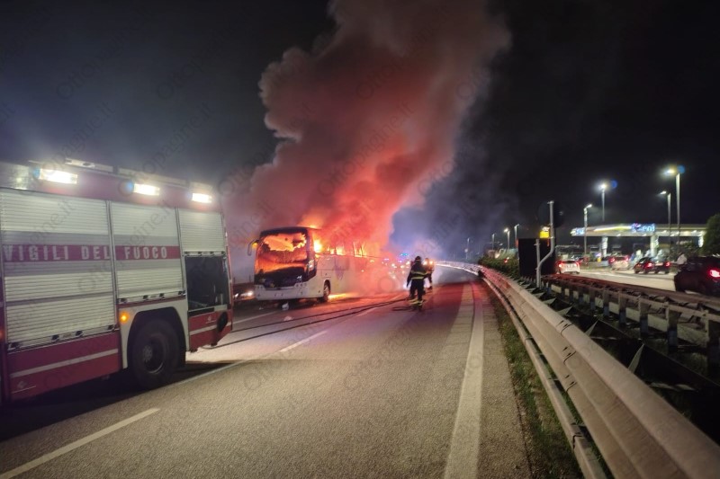 Pullman prende fuoco, paura per i passeggeri a bordo
