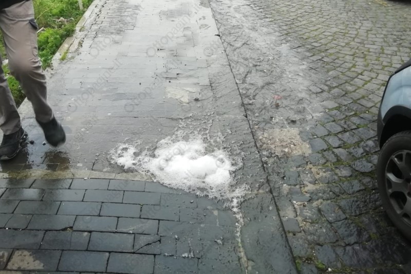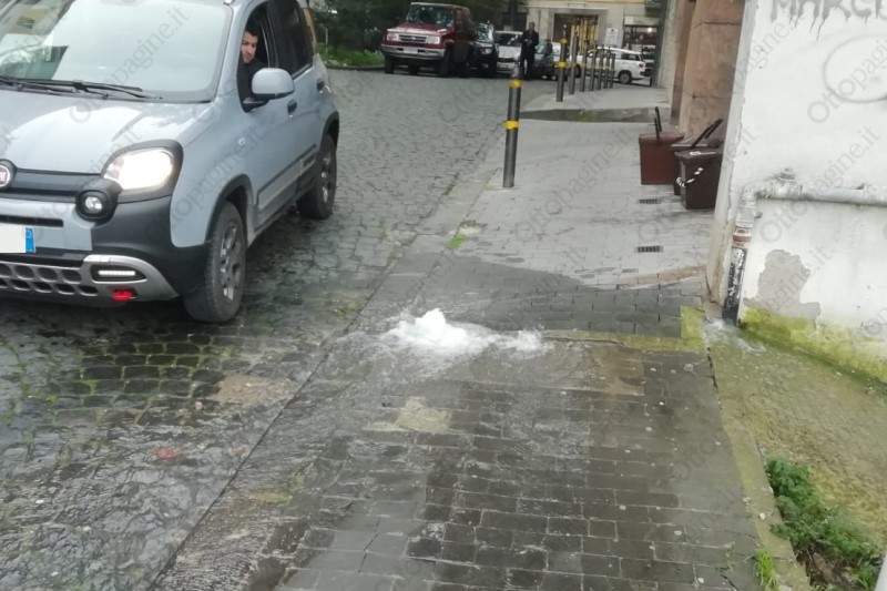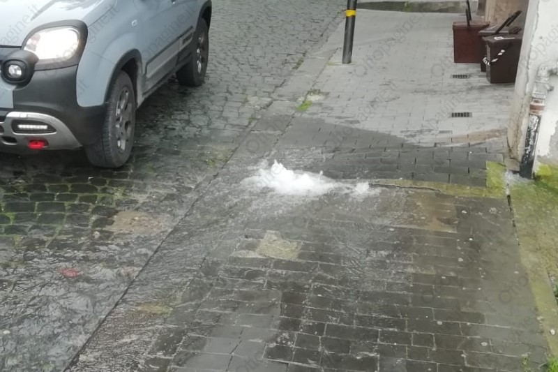 L'acqua ha invaso la carreggiata arrivando fino all'incrocio di via del Pomerio