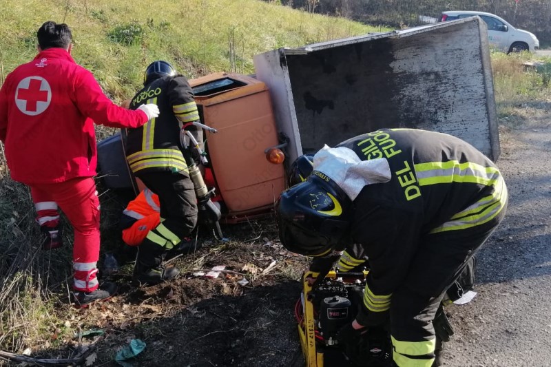 Il mezzo dell'azienda dei rifiuti si è ribaltato. E' accaduto a contrada Malecagna di Benevento