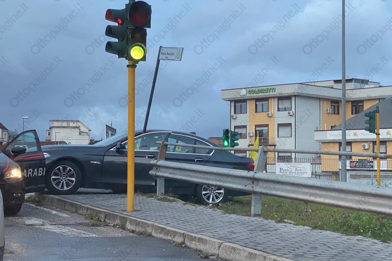 Senza freno a mano: Bmw scivola da area servizio ad aiuola