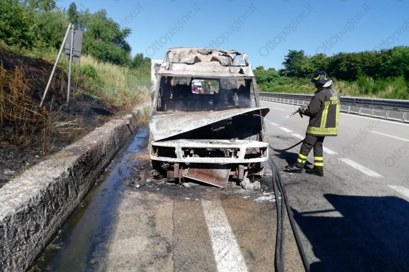 Furgone in fiamme, paura lungo il Raccordo di Benevento