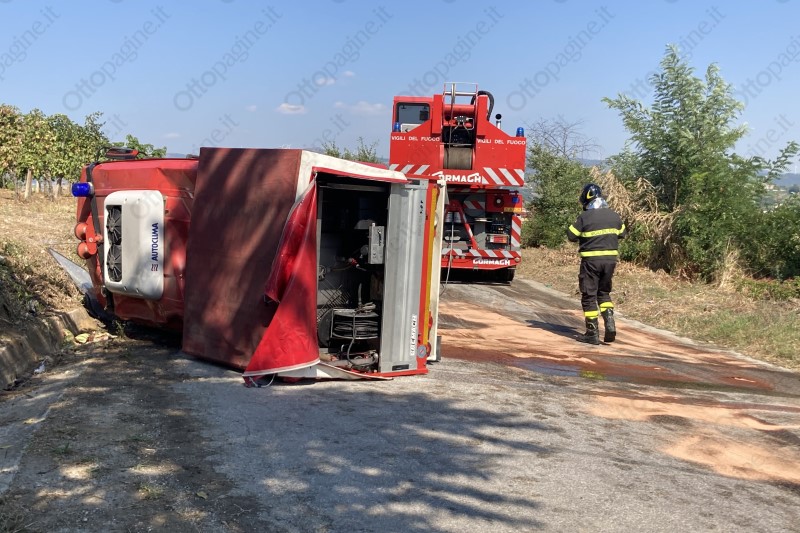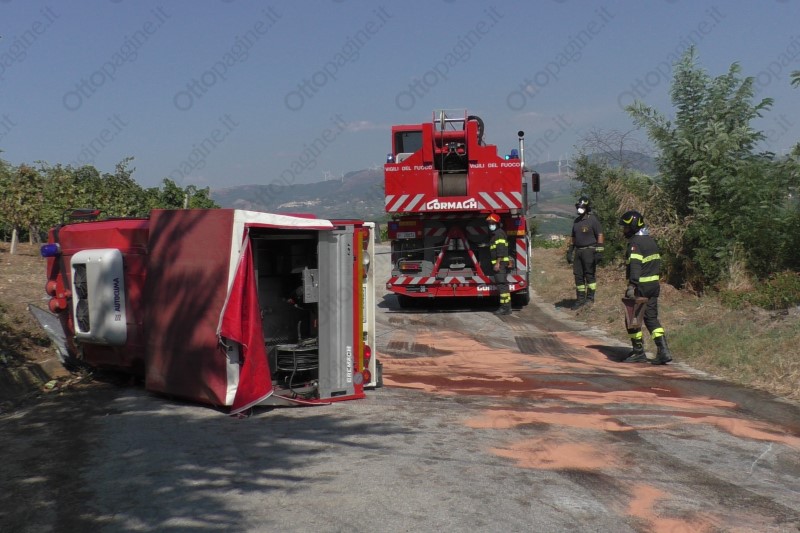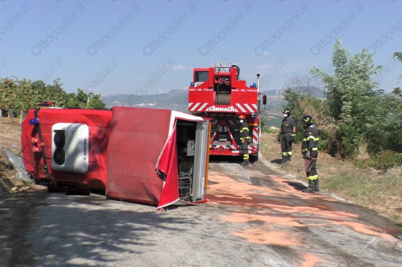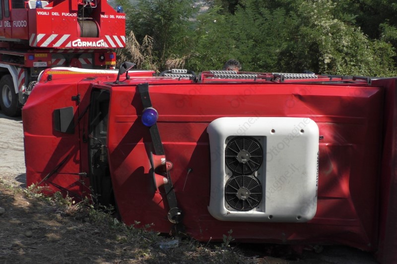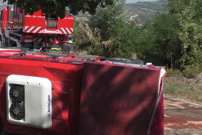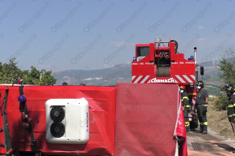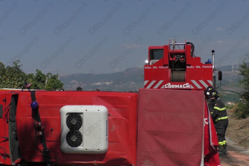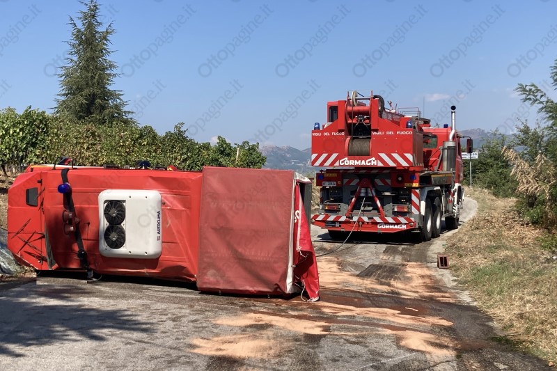 Camion dei vigili del fuoco si ribalta, feriti e paura nel Sannio