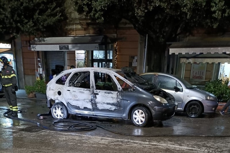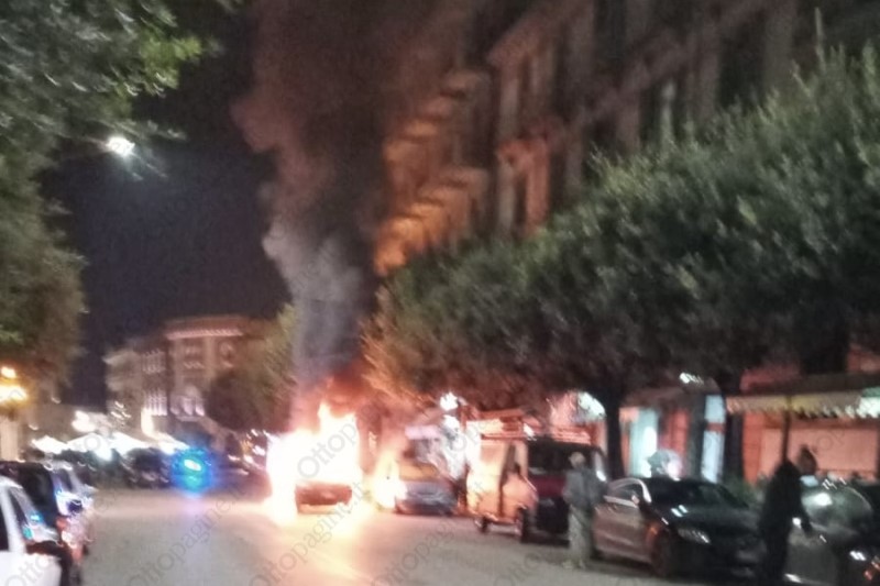 Auto in fiamme in pieno centro a Benevento